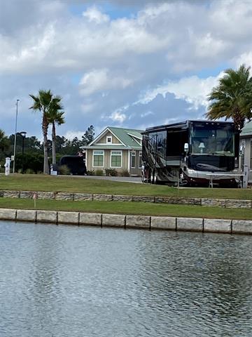 Heading east on Hwy 98 toward Elberta, AL, pass thru Elberta to CR 95. Turn right on CR 95 and 1 mile down on the left is Lake Osprey RV Resort. Turn into Lake Osprey and at Gateway Drive turn right on to Gateway Drive. Turn left into The Point , Lot 62 is 7th down on the right.
